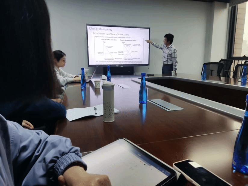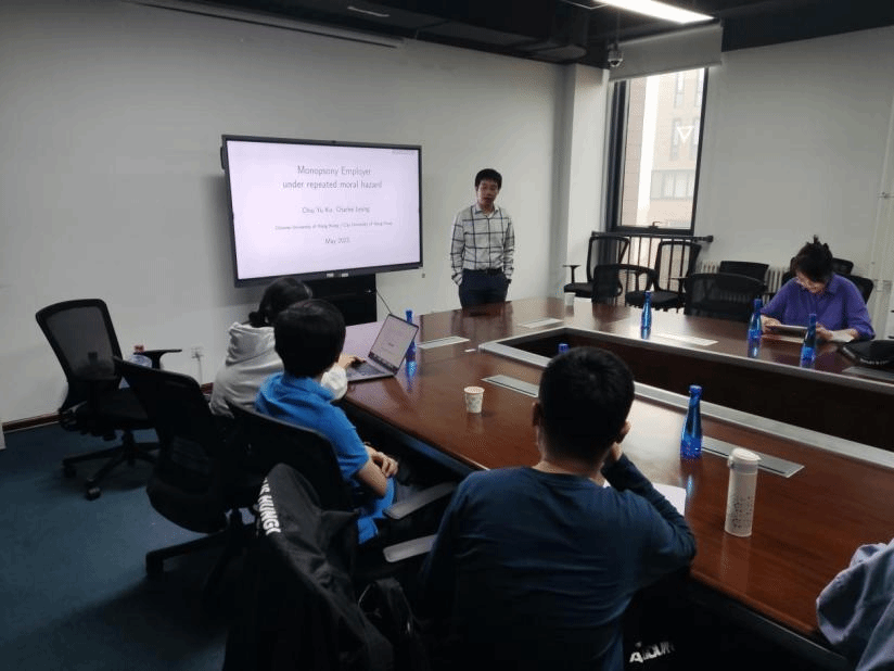 2023年5月19日14:00,香港中文大学院长聘副教授高超禹应beat365官方网站邀请,开展主题为“Monopsony Employer under Repeated Moral Hazard”的讲座,高超禹老师受到了老师和同学们的热烈欢迎!beat365官方网站黄乃静副教授主持讲座,尹振东教授,龚雅娴老师参加了讲座。