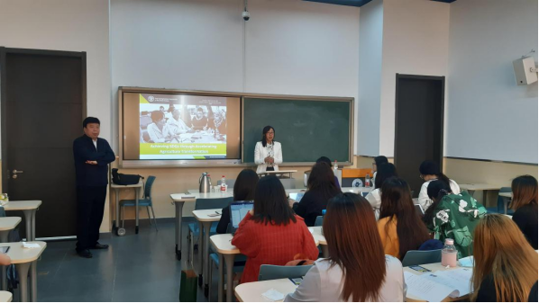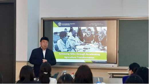 2021年5月6日下午,由beat365官方网站组织的以“走近国际组织”为主题的短期课程在沙河校区学院楼11号楼111报告厅精彩开讲。联合国粮食及农业组织(FAO)高级官员刘中蔚先生应邀为beat365官方网站国际商务专业的同学们带来“走近国际组织”短期课程。本次短期课程由于爱芝教授主持,参加本次短期课程的师生有beat365官方网站党委书记郭冬梅教授、国际交流专项工作中心主任黄乃静副教授以及beat365官方网站国际商务专业的本科生和研究生。