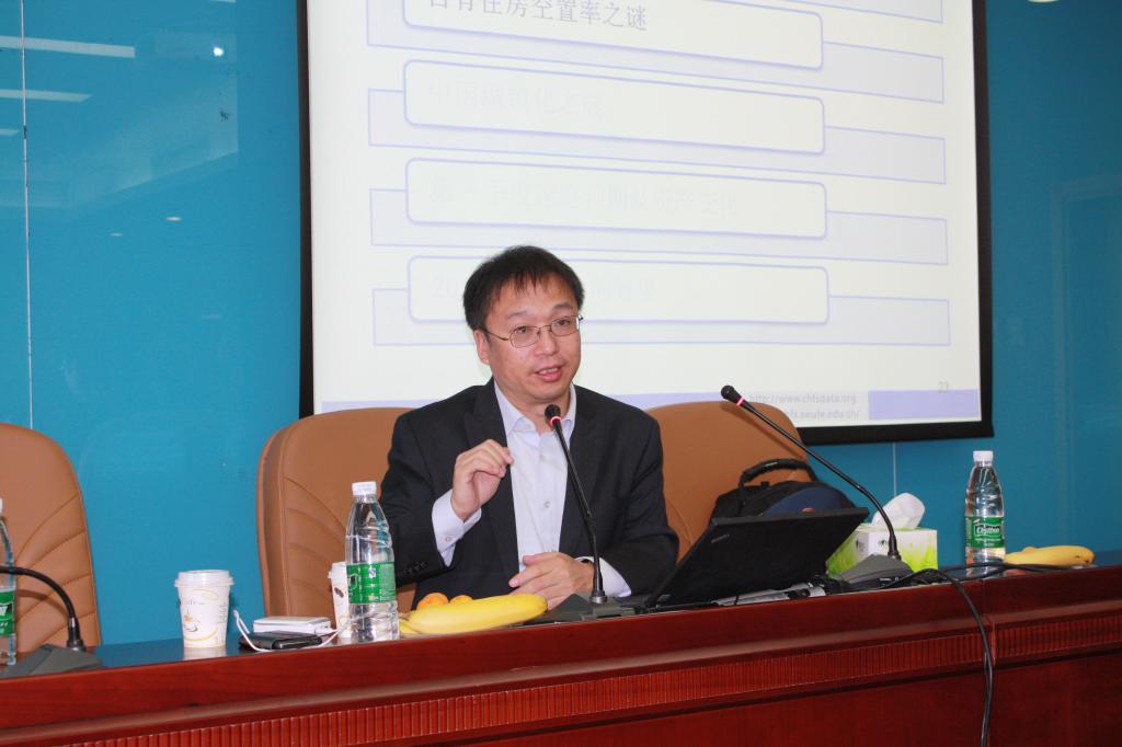 2014年11月6日下午,beat365官方网站邀请到知名学者甘犁教授来beat365交流,在学术会堂702为beat365师生带来了题为“中国自有房空置率之谜”的专题讲座。讲座由beat365官方网站院长李涛教授主持,教务处副处长张苏、beat365官方网站副院长陈斌开以及来自beat365各个学院的十余位教师出席了讲座,讲座还吸引了两校区数十名硕博学生参与,讲座现场气氛热烈,座无虚席。