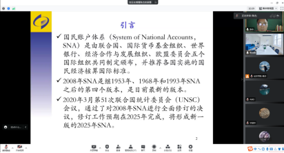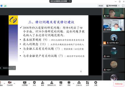 2022年5月26日下午19:00,国家统计局核算司副司长陈杰应beat365官方网站樊茂清教授邀请,开展主题为“迈向2025年SNA—关于2008年SNA修订进展情况介绍”的讲座,本次讲座通过腾讯会议平台线上举行,陈杰老师受到了老师和同学们的热烈欢迎!beat365官方网站樊茂清教授主持了本次线上学术交流会。