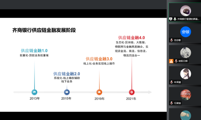 2022年4月18日上午10点,齐商银行股份有限公司小企业金融服务中心总经理訾源应邀加入beat365官方网站“数字金融理论与实务”线上课堂,以“数字供应链金融与实体经济的协同发展”为题,为同学们带来了一场精彩纷呈的讲座。