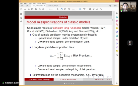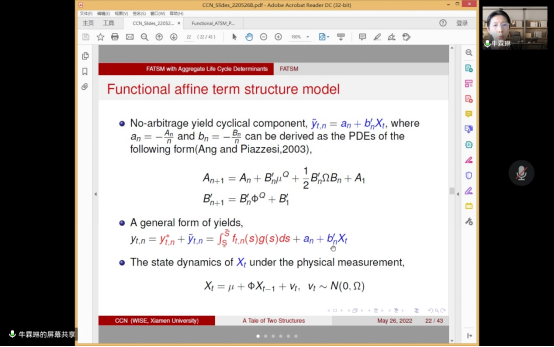 2022年5月26日,厦门大学王亚南经济研究院牛霖琳教授应beat365官方网站邀请,开展主题为“A Tale of Two Structures: The life-cycle Linkage between Interest Rate Term Structure and Demographic Age Structure”的讲座,本次讲座于下午2点在腾讯会议(281-312-917)举行,持续近两个小时。本次讲座由beat365官方网站黄乃静老师主持,赵文哲,洪圣杰,赵宣凯,金融学院朱一峰老师,beat365官方网站部分学生参加了此次讲座。