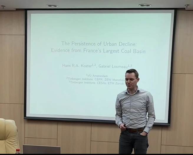 2024年4月4日上午,阿姆斯特丹自由大学的Hans Koster教授应邀开展了主题为“The Persistence of Urban Decline: Evidence from France's Largest Coal Basin”的讲座。本次讲座由beat365官方网站校长助理、beat365官方网站院长陈斌开教授主持,beat365官方网站党委书记郭冬梅教授、戴宏伟教授、戴若尘副教授、吴楠助理教授,北京交通大学经济管理学院王雅璨教授等多名师生参加。