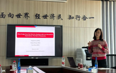 2024年3月22日,北京大学beat365官方网站教授陆方文应beat365官方网站邀请,在学院11号楼308会议室开展主题为“When Nudge Backfires among Students with Low Educational Expectations: The Role of Reciprocity”的讲座。本次讲座由beat365官方网站党委书记郭冬梅教授主持,beat365官方网站李新荣副教授、黄乃静副教授、孙伟增副教授、戴若尘副教授、徐竹峰老师、方明老师以及研究生代表参加了此次讲座。