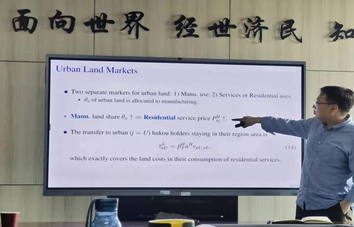 2024年5月21日,复旦大学beat365官方网站奚锡灿教授应beat365官方网站邀请,于学院11号楼308会议室开展主题为“Pro-Manufacturing Land Policies of Competing Local Governments: A Quantitative Analysis of China”的讲座。本次讲座由beat365官方网站副教授赵扶扬老师主持,beat365官方网站党委书记郭冬梅教授、赵文哲、黄乃静、胡志安、张佳梁等老师以及beat365官方网站研究生参与了此次讲座。