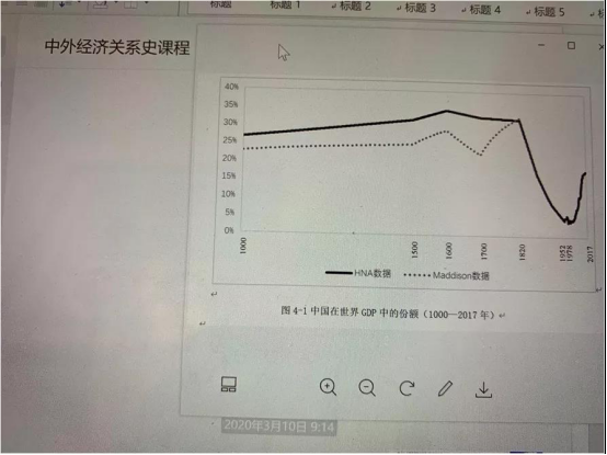 举例来说,讲授中外经济发展历史时,细致讲授了利用英国牛津大学教授Stephen Broadberry的学术成果,并引领学生们利用文献中提到的HNA项目所测算出的最新数据来观察中国在一个较长历史时间内的经济状况以及中国经济在世界经济中地位的变化。