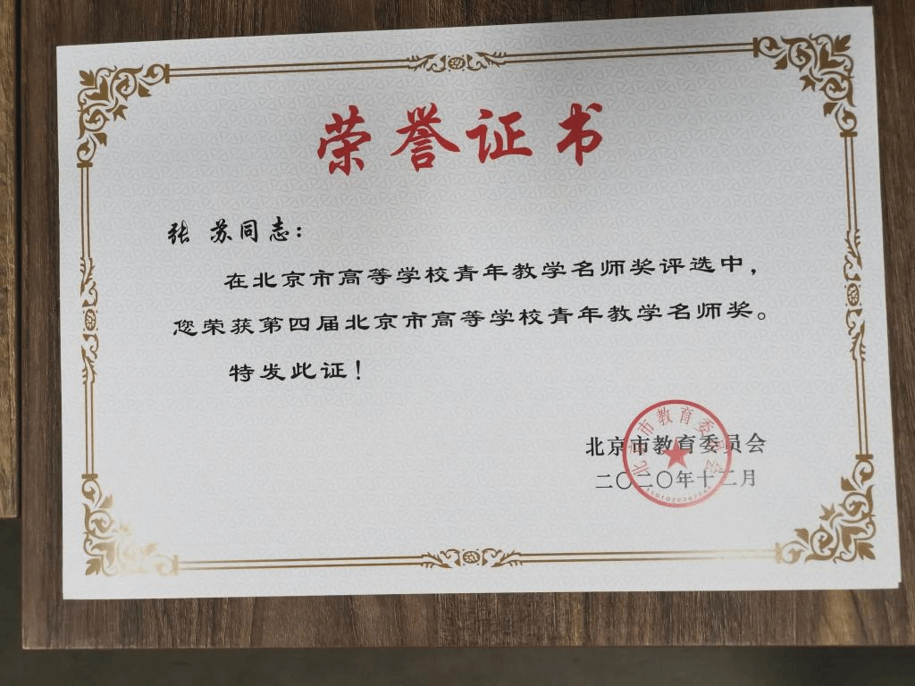 近日,北京市教育委员会公布了“第十六届北京市高等学校教学名师奖和第四届北京市高等学校青年教学名师奖”获奖名单,beat365张苏教授获得第四届北京市高等学校青年教学名师奖。
