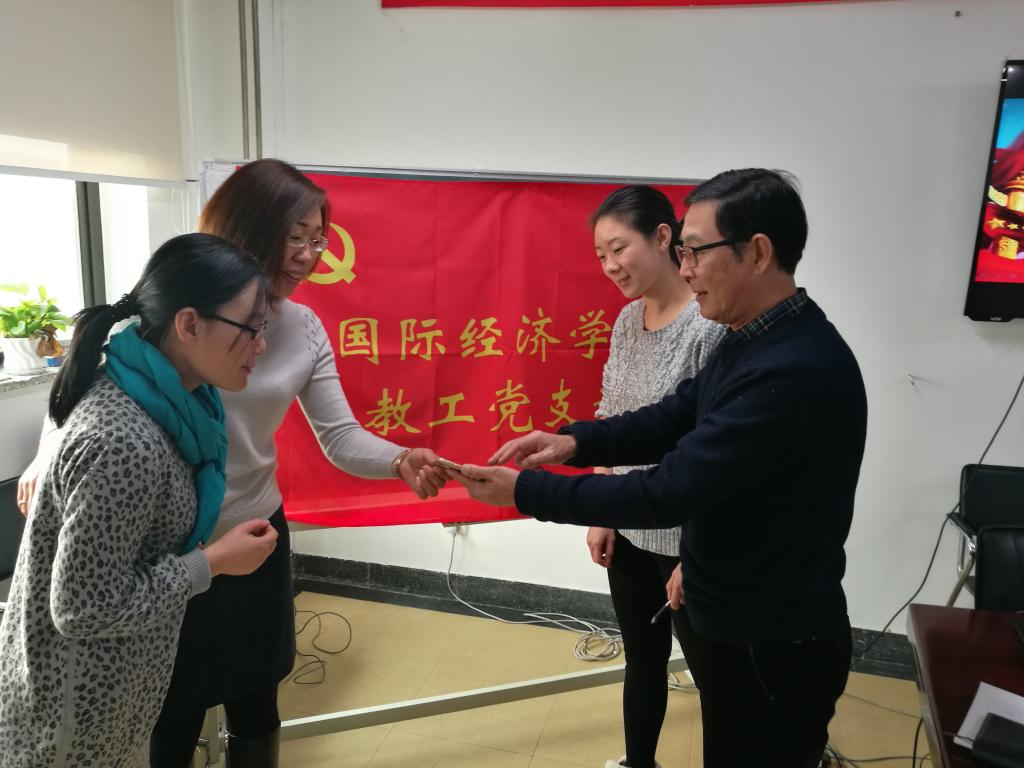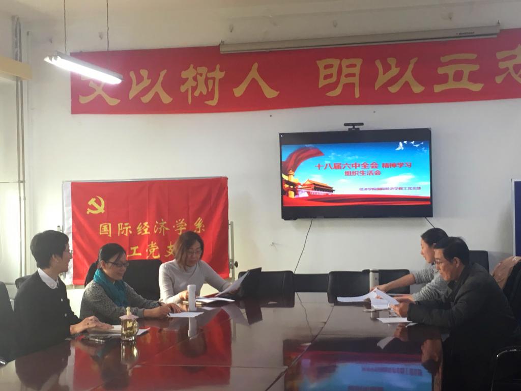 12月21日中午,beat365官方网站国际经济学教工党支部4名党员在学院南路校区1305会议室组织十八届六中全会、全国高校思想政治工作会议精神专题学习,学习研讨了习近平总书记《把思想政治工作贯穿教育教学全过程》的重要讲话。专题学习由党支部副书记赵若思同志主持,beat365官方网站党委书记雷洪峰列席会议。