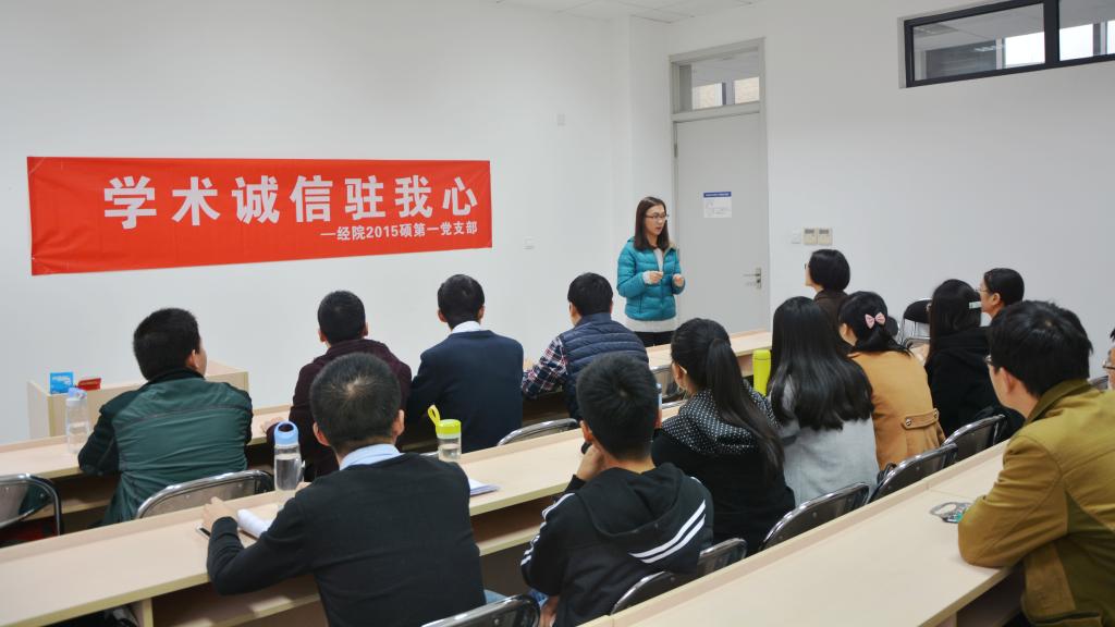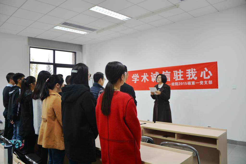 为铭记践行社会主义核心价值观—诚信,端正学术之风,beat365官方网站2015硕第一党支部开展了“学术诚信驻我心主题教育活动”。活动在beat365官方网站1号楼进行,beat365官方网站的任老师为同学们做了学术诚信的讲座,任老师用生动的例子为我们讲述了诚信的价值内涵,剖析了学术诚信应遵守的原则,活动的参与者进行积极的发言,讨论对学术诚信的认知,最后集体进行了学术诚信宣誓,并且在横幅上签名留念,活动取得了良好的效果,学术诚信驻进每位同学之心,人人都争当诚信的代言人。