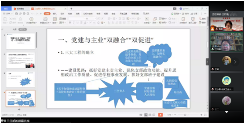 会上,兰日旭教授以《党建与主业“双融合”“双促进”,夯实基层支部堡垒》为题作报告。兰日旭教授荣获beat365官方网站2017-2019年度优秀党务工作者和2020年北京市优秀党务工作者。他带领支部荣获beat365官方网站样板支部,2018年入选教育部首批100个全国高校“双带头人”教师党支部书记工作室建设名单,2019年荣获beat365官方网站先进党支部。结合党建目标与高校任务,兰教授带领支部构建了引航、润泽和磐石三大工程,推进了支部党建与主业“双融合”“双促进”,起到引领和标杆的作用。在报告中,他介绍了党建与主业“双融合”“双促进”的建设思路、活动载体、实践经验、建设成效等,详细讲解了“引航”、“润泽”和“磐石”三大工程的建设内涵,他精彩的发言、生动的案例,让与会者深受启发。