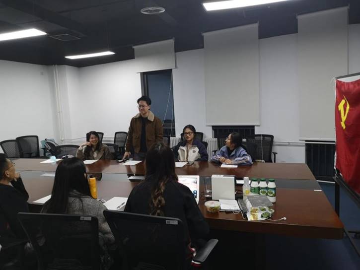 在学习部分,首先2020级硕士第三党支部书记刘钰婷从深刻认识党的十九届五中全会重要意义、我国“十三五”时期经济社会发展取得的重大成就、准确把握“十四五”时期面临的国际国内形势等几个方面进行宣讲。学生支部书记们围绕二〇三五年远景目标和“十四五”时期经济社会发展的指导思想、遵循原则、主要目标和重点任务,就如何将远景目标和“十四五”规划与党员的思想学习、个人成长结合等方面进行探讨,认真领会十九届五中全会精神。