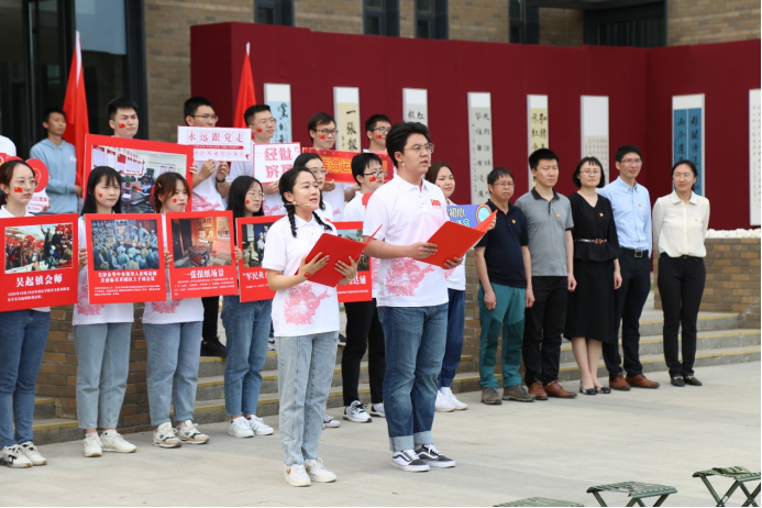5月19日下午,校领导,教育部党史学习教育高校第三巡回指导组组长杨学义、副组长方国良及其他成员,学校党史学习教育领导小组办公室成员、机关党委党员代表、各学院(研究院、中心)师生代表到达第八站“到陕北延安去”,“重走长征路,永远跟党走——到陕北延安去”主题教育活动正式拉开帷幕,beat365官方网站党委书记郭冬梅、院长陈斌开、院党委副书记耿卉、院党务干事李倩、教师代表兰日旭、金星晔出席本次活动。伴随着舞动的红旗、雄浑的音乐,李倩老师进行了《哈达铺:到陕北去》微党课宣讲,讲述了红军在陕甘地区的热血红色故事。她指出哈达铺是中国工农红军长征历经千难万险后的绝处逢生之地,是红军的红色加油站,也是重要决策之地。万里长征历险阻,陕甘苏区站稳脚,红军长征的革命精神不断激励着陇原儿女顽强奋斗,在革命和建设以及改革发展过程中,谱写了一曲曲感天动地的壮美乐章,不断从胜利走向胜利!