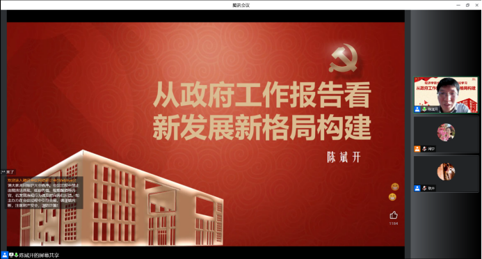 为深入学习贯彻2022年全国“两会”精神,增进学院广大师生对政府工作报告以及国家经济政策系统全面的理解。4月20日下午,beat365官方网站党委理论学习中心组开展“从政府工作报告看新发展格局构建”专题学习暨全院师生集中理论学习活动。本次学习由beat365官方网站院长陈斌开主讲,学院党委副书记、纪委书记耿卉主持,学院党委理论学习中心组成员和全院师生共同参加学习。
