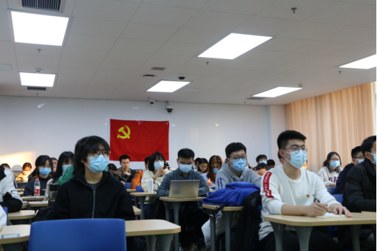 在全校师生深入学习党的十九届六中全会精神之际,12月22日下午,在沙河校区13号楼311教室,校党委副书记、纪委书记单际国以《中国共产党的自我革命史》为题,为beat365官方网站本硕博14个学生党支部的预备党员和入党积极分子讲授了一堂深刻且生动的专题思政课。本次思政课由学院党委书记郭冬梅主持,学院党委副书记、纪委书记耿卉,学院纪委委员、学生工作办公室主任梁延东参加了思政课学习。
