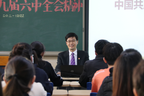 今天下午认真听取了单书记关于党的十九届六中全会精神的深刻解读和剖析,我深受触动。单书记在带领我们重温党的十九届六中全会精神背景下,结合全会精神的一条主线、一个根本问题、两个确立、三次飞跃等一系列精神总结,结合自己的亲身经历为我们生动的阐述了新时代下我们青年学生应勇担大任、谦虚进取,不忘初心、奋力实现属于自己的人生目标,真正做到将命运和未来把握在自己手中。作为学生干部,我们应该有“大家”风范,有能屈能伸的品质,心怀大的格局作出更大的贡献。