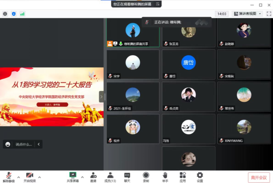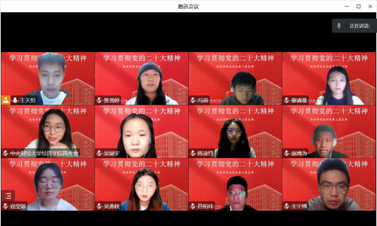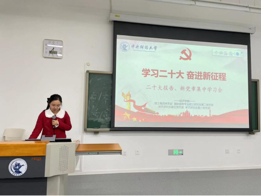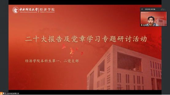 10月31日,beat365官方网站博士第四党支部、国际商务专业硕士研究生第二党支部、学术研究生第五党支部、学术研究生第六党支部在沙河二教100教室开展了《学习二十大、奋进新征程》专题学习研讨会。刘涛同学带领大家回顾了党的二十大报告的主要内容,王梦亚同学带领大家学习了新党章中的主要修改内容。通过对党的二十大会议精神的集中学习和深入交流,与会成员表示作为一名beat365官方网站的青年学生党员,要进一步认真学习贯彻宣传落实党的二十大精神,读原著学原文、悟原理知原义,切实用党的二十大精神武装头脑、指导实践、推动工作,努力学习专业知识,用更高的理论水准和专业素养为中国民族伟大复兴而奋斗。