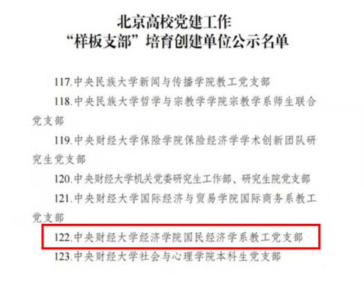 近日,北京市委教育工委公布了北京高校党建工作“标杆院系”“样板支部”“党建引领实践创新示范项目”培育创建单位名单。beat365国民经济学系教工党支部入选北京高校党建工作“样板支部”培育创建单位,“‘134’党建引领实践创新项目——对国家首批基础学科拔尖学生培养计划2.0基地党建引领模式的探索”入选北京高校党建工作“党建引领实践创新示范项目”。