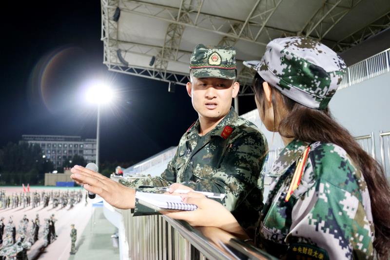 整队中,鹰隼一般的目光扫过绿茵场;解散前,飞转的头脑安排离场序;骄阳下,略微沙哑的嗓音点燃豪迈;斜晖里,落霞勾勒出身后的军魂。他就是本次军训的场内指挥,段团长。采访在夜训时进行,这位比我们年长十岁的武警,展露出了雷厉风行背后的温煦和蔼。