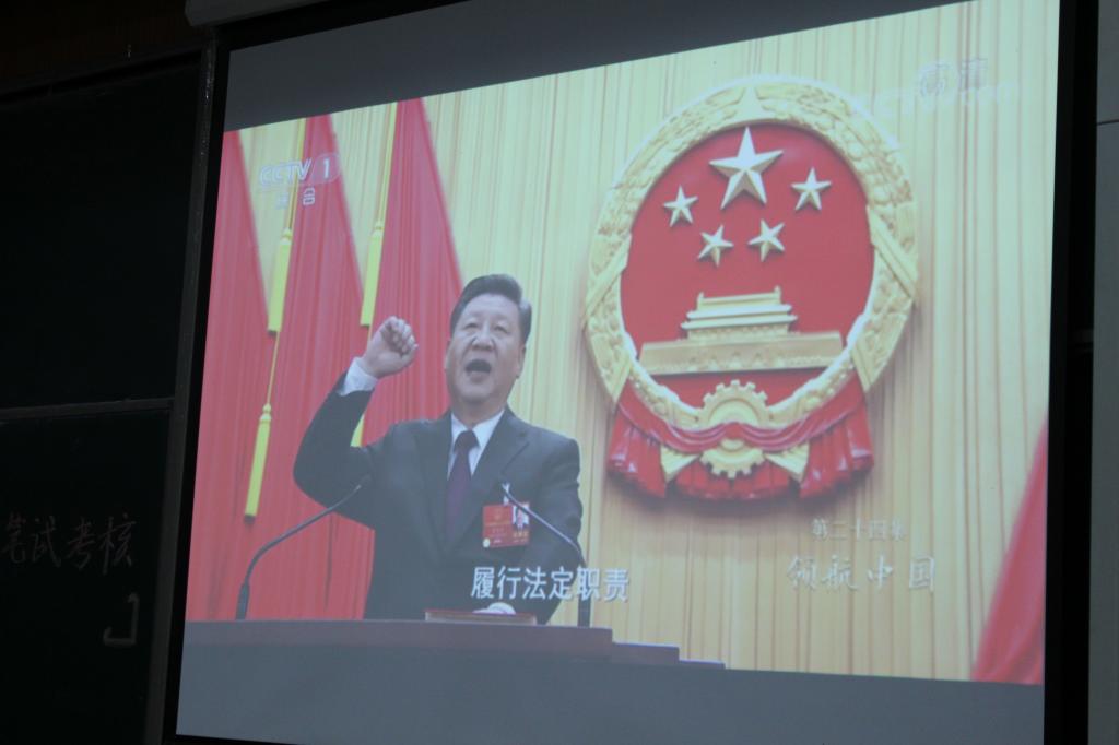 随后进行的是团学团务知识测验。本次测验主要考察了视频里所提及党的伟大奋斗历程中的重要内容以及同学们对团、党、国家的认识。考题范围大到党的发展史中的重大历史事件,小至身边的“芮+”计划,既考察了同学们掌握作为一名共青团员所应具备的理论知识,也要求同学们对个人与国家的关系发表自己的看法。同学们专心致志认真答题,并在四十五分钟内交上了自己的答卷。