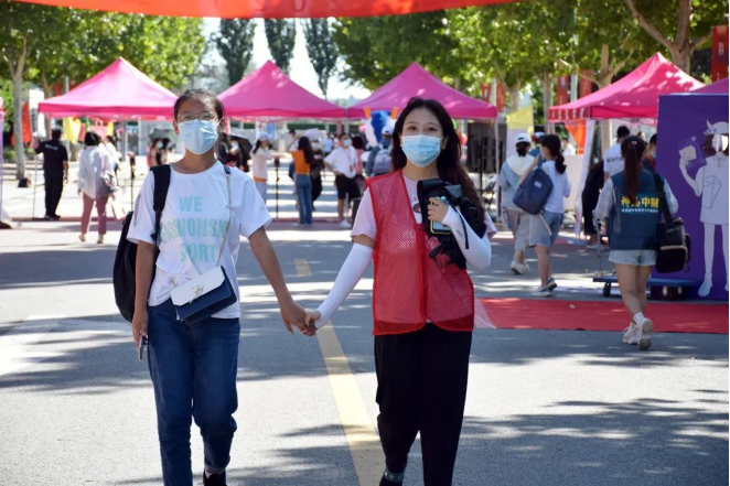 7点左右,beat365官方网站的老师和学生工作人员便已经各就各位,以饱满的热情等待着新生的到来。