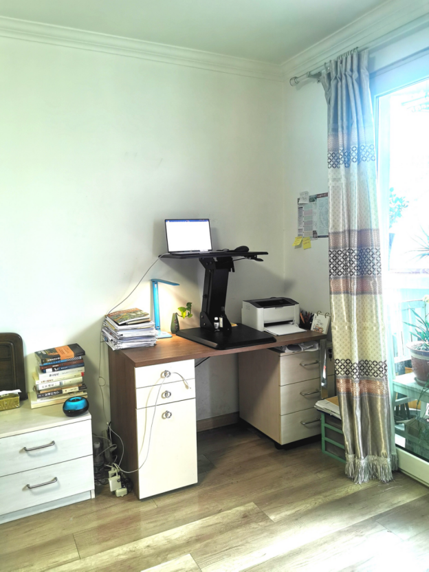 配文:家的一隅,却是待得最多的地方。站着工作,本意在健康,却意外拓展了空间