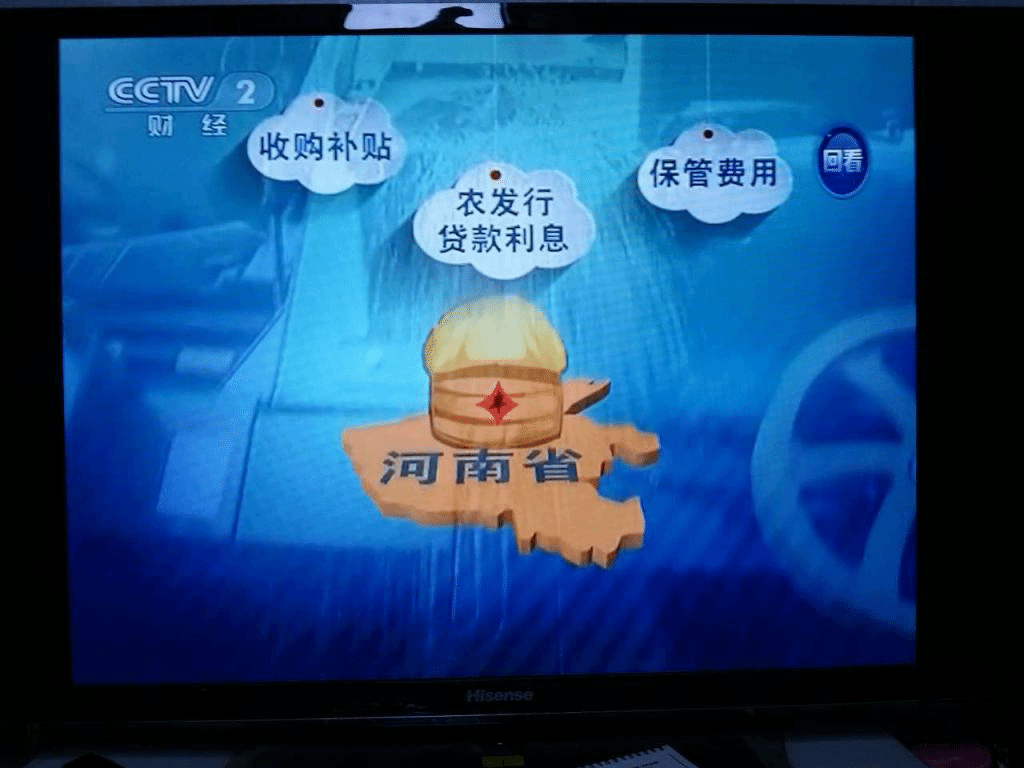 那么这两幅图主要是展现的在小麦的主产区河南省,国有的这些粮食企业那么他在实行这种敞开收购或者是粮食收储的时候,他主要衍生的一些成本。比如说给农民发放的这种补贴的成本,另外从农发行获得贷款的这种利息成本。还有就是收购的粮食在仓库中的储藏成本。据测算,那么在河南的话。每一天小麦的储藏成本大概是两毛多钱。大概一块多钱的小麦有两毛多钱的成本是这三项成本构成的。那么一年下来的话,在河南仅收购小麦的影响,政府承担的财政负担大概是一百三十五个亿左右。