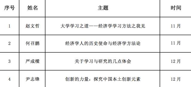 2017-2018学年第一学期,“经济学家梦工场”德育示范基地继续以面授答疑、前沿讲座、workshop、科研助理招募、微信课堂等形式厚重beat365学生的经济学专业基础教育,提升经济学拔尖人才培养实效。本学期,“经济学家梦工场”将在现有形式的基础上,探索“网课”建设,逐步上线“创业融资”慕课内容,邀请教学名师录制“十九大关键词”微语音,依托学院网站、梦工场公众平台、慕课网站等媒体,实现教学资源的开放共享。本学期课程体系安排如下: