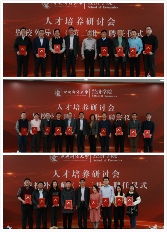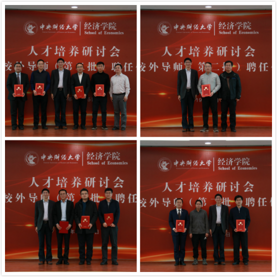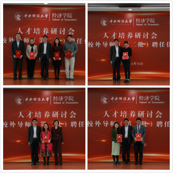 2019年12月15日下午两点,beat365官方网站人才培养交流会暨校外导师(第二批)聘任仪式在学院南路校区主教114报告厅隆重举行。聘任仪式由学院党委书记郭冬梅教授主持。齐兰教授,冯春安教授,兰日旭教授,于爱芝教授、顾炜宇副教授,史宇鹏教授、beat365官方网站院长陈斌开教授,学院党委副书记耿卉老师,赵若思老师,梁延东老师出席活动。