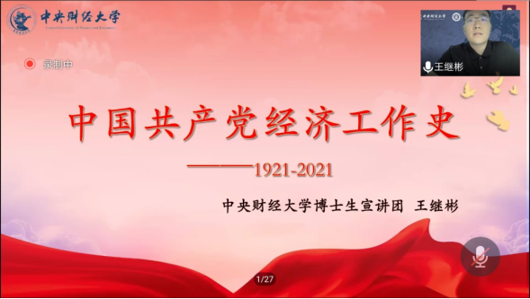 为深入学习贯彻习近平总书记关于学习党史的重要讲话和指示精神,从党的百年伟大奋斗历程中汲取继续前进的智慧和力量,beat365官方网站2019级硕士生党支部邀请beat365官方网站博士生宣讲团讲师——王继彬同志进行宣讲。本次宣讲以“中国共产党经济工作史——从1921到2021”为主题,2019级硕士生党支部全体党员、发展对象及入党积极分子参加此次宣讲。