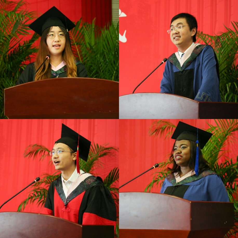 龙马志,担乾坤,岁月难忘中财情。致辞环节中,张淑娟同学、杨杰同学、王念同学、罗安同学分别代表本科生、研究生、博士生和留学生发表了毕业感言,他们以质朴的语言表达了对学校、对学院的感恩和眷恋。“今天的毕业典礼见证的不是我们修德修能求学生涯的结束,而是经世济民铸就辉煌人生的开始。”他们表示,无论身处何地何时,都会谨记母校的谆谆教诲,寻求自己的人生方向,不因外在环境而迷失自我,不因闲言碎语而动摇自我,始终做到秉持初心,砥砺前行!