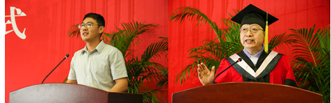 教师代表伏霖副教授以“摸着石头过河”寄语毕业生,希望他们能够尊重规律,稳步前进,更要敢闯敢干,在摸索中总结经验教训。蒋选教授从工作、学习、生活三个方面嘱咐学生“人品比能力更重要,善良比天赋更重要,厚道比聪明更重要”,在未来的人生旅途中,要做一个对他人有益、对社会有贡献的人。