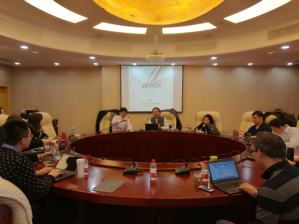 2017年11月22日,中国人民大学财政金融学院副院长张成思教授应beat365官方网站的邀请,在学术会堂606开展了题为“金融化的逻辑”的讲座。讲座由beat365官方网站副院长陈斌开教授主持,赵文哲老师、黄乃静老师参加,并吸引了多位校内教师,以及博士生和硕士生参加。