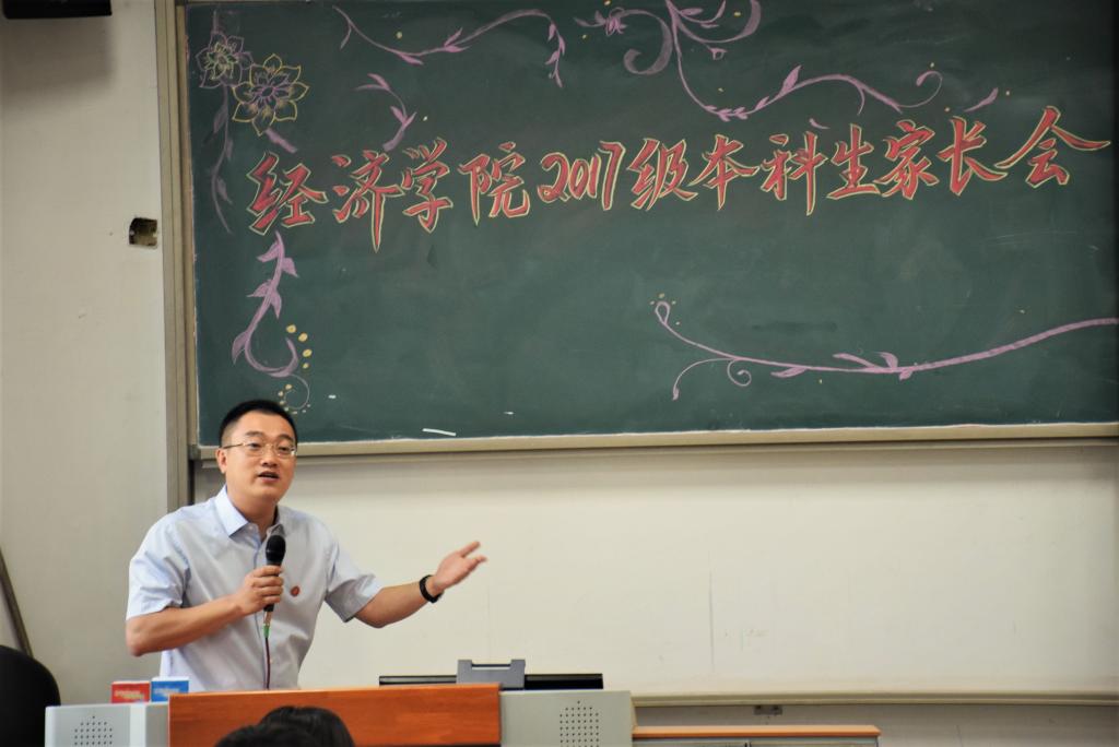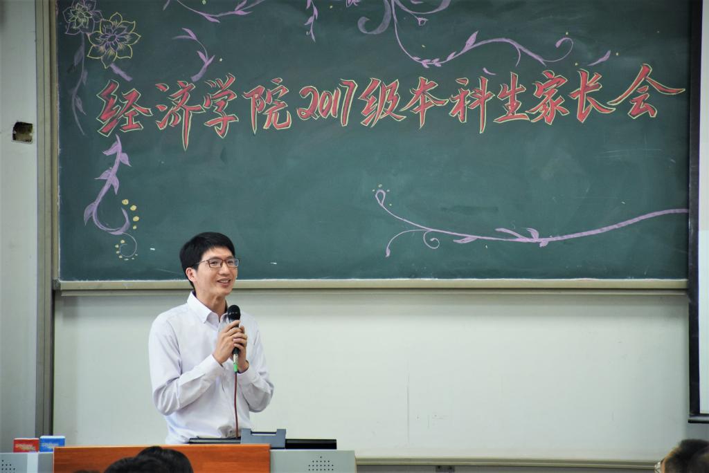 李涛院长发言结束后,陈斌开副院长为诸位家长简单介绍了学校和学院建校历史、校园环境及办学状况,重点介绍了beat365官方网站师资力量、特色品牌活动以及beat365官方网站保研情况。陈斌开副院长强调学生应主动与老师接触,充分利用beat365官方网站师生比高的优势,高质量地完成学业。