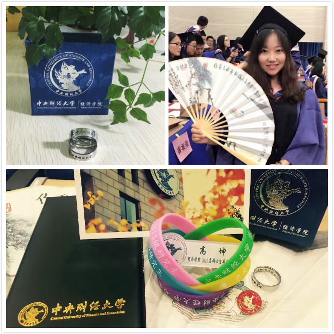 在本次毕业典礼中,beat365官方网站为毕业生准备了定制的毕业指环,刻印着每个学生名字的指环承载了学院与毕业生们的许诺,希望毕业生们把同学的情谊、老师的关爱、学院的深情戴在指间,朝着自己努力的方向越飞越高,欢迎“爱人们”常回来看看。同时,毕业生们也向同学和师长表达了内心的感激、不舍和祝福。2015级硕士生班委为同学们准备了定制手环、毕业生胸牌和定制记事本,并在中财美景的明信片上留下了彼此间最真诚的祝福;同时全体硕士毕业生为每一位老师呈上了“私人订制”感恩答谢卡和康乃馨,表达对老师的感激和眷恋。毕业时刻,感念师恩,每个毕业班都用自己的表达方式阐述了“经院予我,时光予你”的特殊意义。