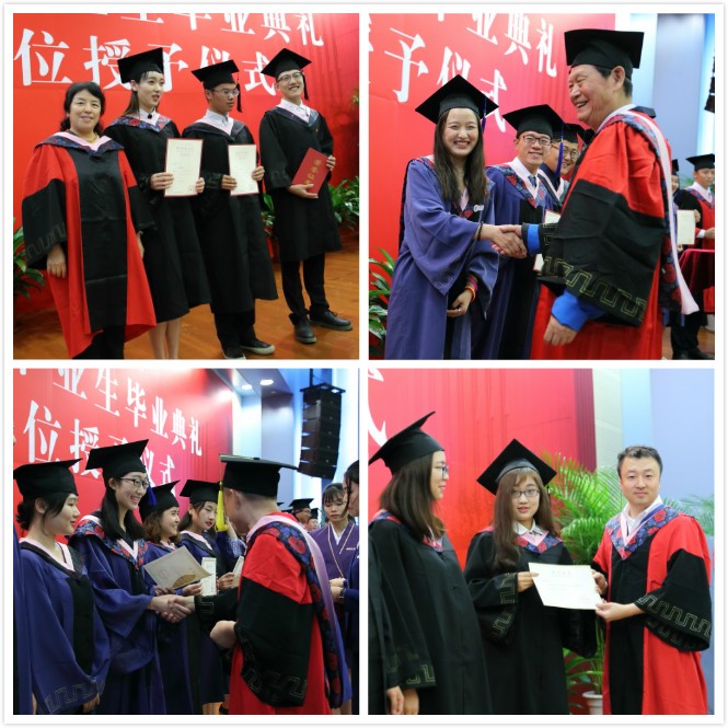 毕业典礼后,学院举行了隆重的学位授予仪式。beat365官方网站学位委员会主席、院长、博士生导师李涛与硕士生导师共同完成研究生学位授予环节。院长为毕业生拨转流苏,硕士生导师则为自己的学生颁发毕业证书和学位证书。随后,院长同样为每一名本科毕业生拨转了流苏并颁发了毕业证书与学位证书。学院拍照定格了每一位毕业生此刻的庄严与喜悦。