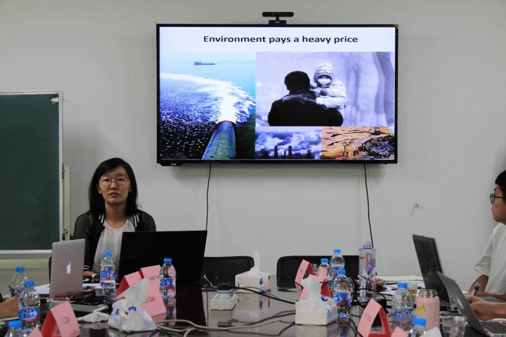 绿色金融国际研究院刘倩副研究员首先对Air pollution,self-protective expenditure and inequity国内外的前期研究和存在的问题进行了介绍,随后beat365官方网站15级本科生李子秦就团队在阿里巴巴“第6季”活水计划支持下获得的家庭防护消费大数据的初步分析结果进行了汇报展示。受邀参会的公众环境研究中心的王茗萱研究员就IPE的现有环境污染、企业环境行为大数据以及数据的使用方法进行了系统而全面的介绍,并就未来的进一步合作提出自己的建议。最后,beat365官方网站2015级本科生黄逸雯等对雾霾风险感知及其防护行为研究的主要结论及其遇到的问题进行了报告。