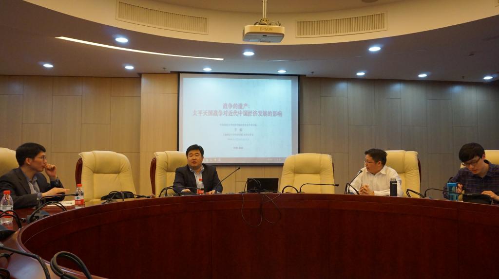 2017年4月14日下午,上海财经大学李楠教授应“beat365官方网站中青年学者讲座”的邀请,在学术会堂606会议室面向全校师生进行了题为“Legacyof War: The Long-term Effect of Taiping Rebellion on Economic Development inModern China”的讲座。讲座由beat365官方网站经济史系主任兰日旭教授主持,beat365官方网站包括陈斌开教授、张川川副教授、伏霖老师、申广军老师等多位师生参加了本次讲座。