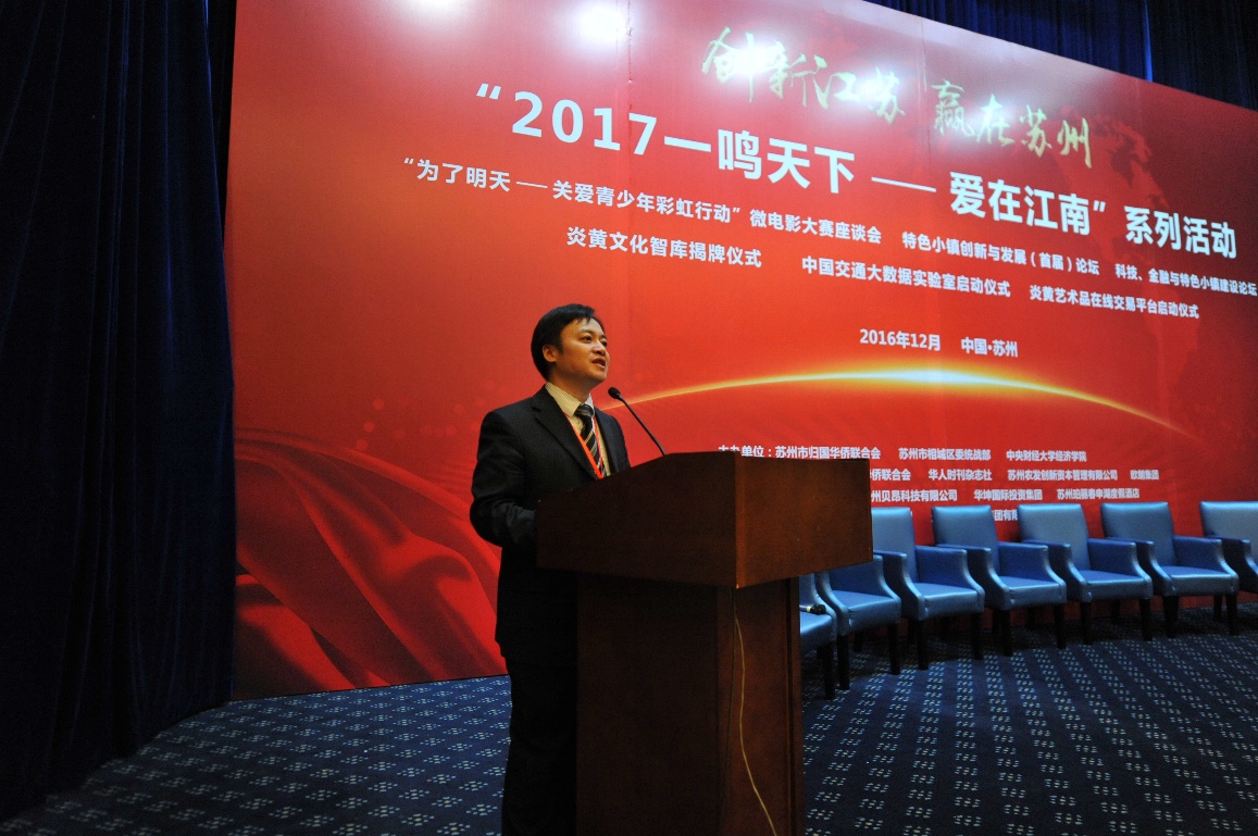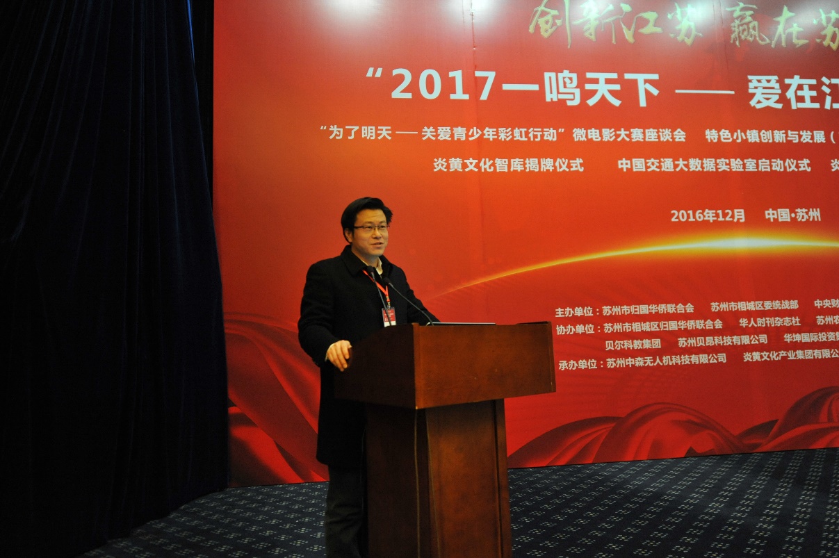 首届特色小镇创新与发展(苏州)论坛作为【创新江苏·赢在苏州“2017一鸣天下——爱在江南”】系列活动之一,于2016年12月30日在苏州举行,由苏州市归国华侨联合会联合、相城区归国华侨联合会、beat365官方网站金融创新与风险管理研究中心、城市经济与区域发展研究中心共同举办,苏州市农业发展集团有限公司协办、苏州中森无人机科技有限公司承办。来自团中央、《求是》杂志社、江苏省侨联、苏州市政府、苏州市侨联有关领导,中国社科院、beat365官方网站、南京农业大学等的专家学者,碧水源科技等多家知名上市公司代表、苏州部分乡镇代表和企业家参加了本次论坛。