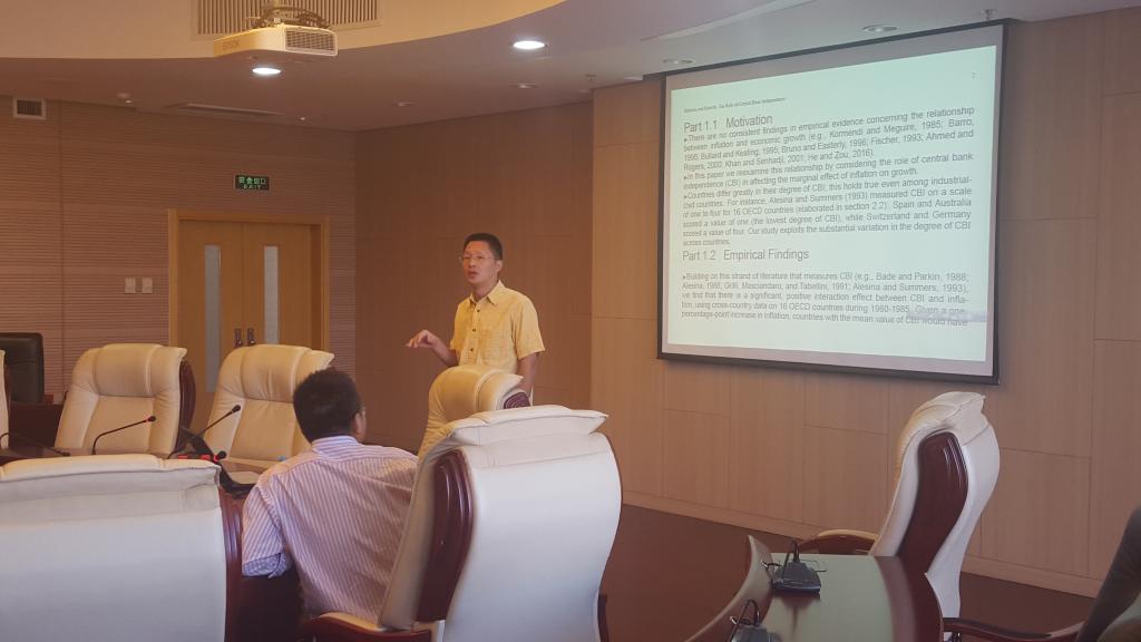 2016年9月28日上午,beat365官方网站中国经济与管理研究院的何其春副教授应邀在beat365官方网站学术会堂举行了一场学术讲座,何其春副教授的论文名称为:Inflation and Growth: The Role of Central Bank Independence。此次讲座在严成樑副教授的主持下举行,与会人员还有几位老师和学生。