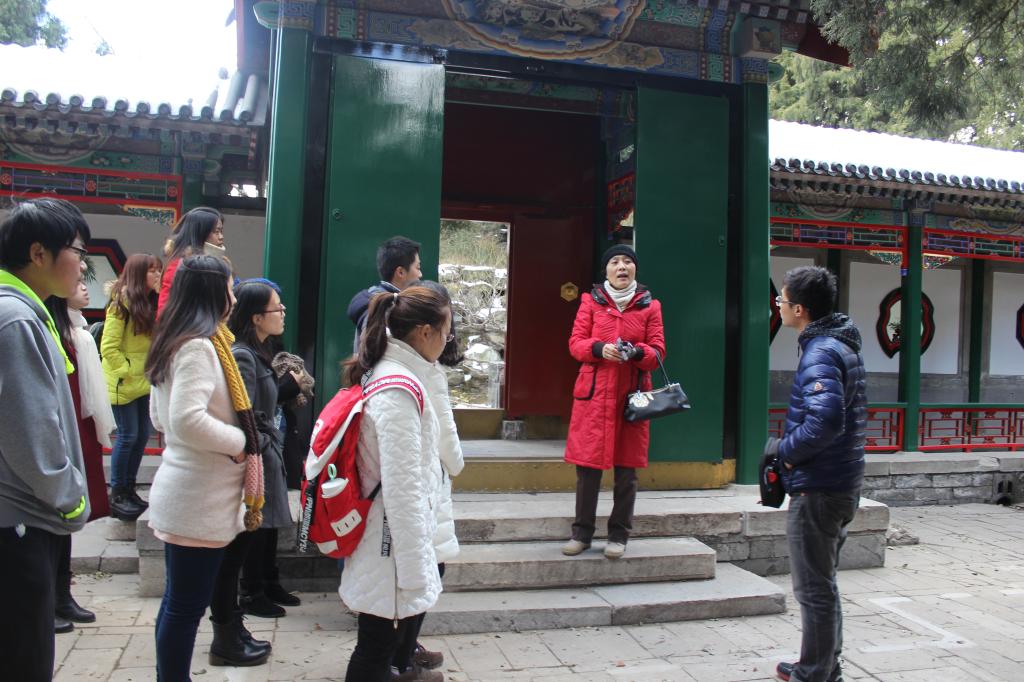 西风料峭洗纤尘,晴日穿云暖人心。雾霾散后,天朗气清,下午两点,大巴抵达皇家园林颐和园。同学们跟随徐老师的步伐,穿过北宫门,翻过万寿山,沿蜿蜒的后山路,走进了青松掩映的益寿堂,揭开了探寻中国共产党“进京赶考”之路的序幕。