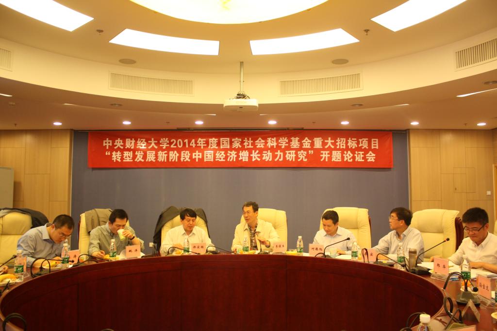 2015年4月29日,由beat365官方网站陈斌开教授主持的2014年度国家社科基金重大招标项目《转型发展新阶段中国经济增长动力研究》开题论证会在学术会堂606举行。专家组由南开大学副校长、南开大学WTO研究中心主任佟家栋教授;中国社会科学院金融研究所党委书记、副所长何德旭教授;北京大学国家发展研究院院长、中国经济研究中心主任姚洋教授;北京师范大学经济与工商管理学院特聘教授,北京师范大学中国收入分配研究院执行院长李实教授组成。beat365官方网站副校长李俊生教授、互联网经济研究院院长孙宝文教授、beat365官方网站院长李涛教授和课题组相关成员及部分师生参加了本次论证会。会议由科研处副处长邢华博士主持。