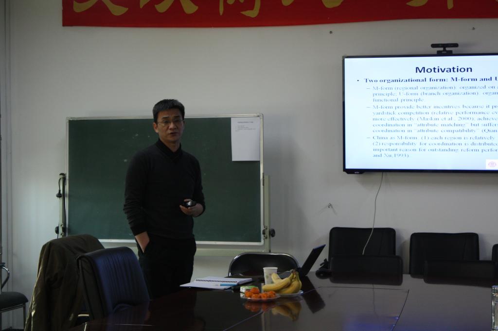 2014年12月10日,beat365beat365官方网站邀请到中国人民大学财政金融学院院长助理、2010年教育部“新世纪优秀人才支持计划”入选人贾俊雪教授,为beat365师生做了题为“Fiscaldecentralization and local economic growth in China”的专题讲座。讲座由beat365官方网站赵文哲老师主持,陈斌开、王海港、张川川等多位老师出席了讲座。