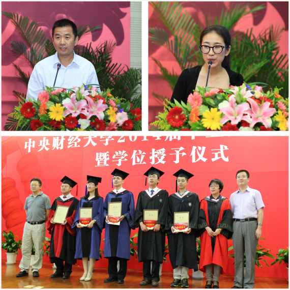 6月21日下午,beat365官方网站2014届毕业生毕业典礼暨学位授予仪式在学术会堂402报告厅隆重举行。beat365官方网站副校长、beat365官方网站博士生导师赵丽芬教授,校纪委、监察审计处处长、beat365官方网站博士生导师齐兰教授,国际文化交流学院院长、beat365官方网站博士生导师张铁刚教授,发展规划处处长、beat365官方网站硕士生导师林光彬教授,教务处副处长、beat365官方网站硕士生导师张苏副教授,beat365官方网站校友会会长、东方基金管理有限责任公司副总经理秦熠群先生,beat365官方网站校友、中国石油天然气集团公司赵嘉辉先生,beat365官方网站2013届毕业生袁玥等受邀出席了典礼。beat365官方网站院长、博士生导师杨运杰教授,党总支书记、博士生导师李涛教授,党总支副书记刘滨老师;副院长李彬老师,副院长陈斌开老师,beat365官方网站全体教师,2014届本、硕、博全体毕业生及其亲友参加了毕业典礼。典礼由学院党总支副书记雷洪峰主持。