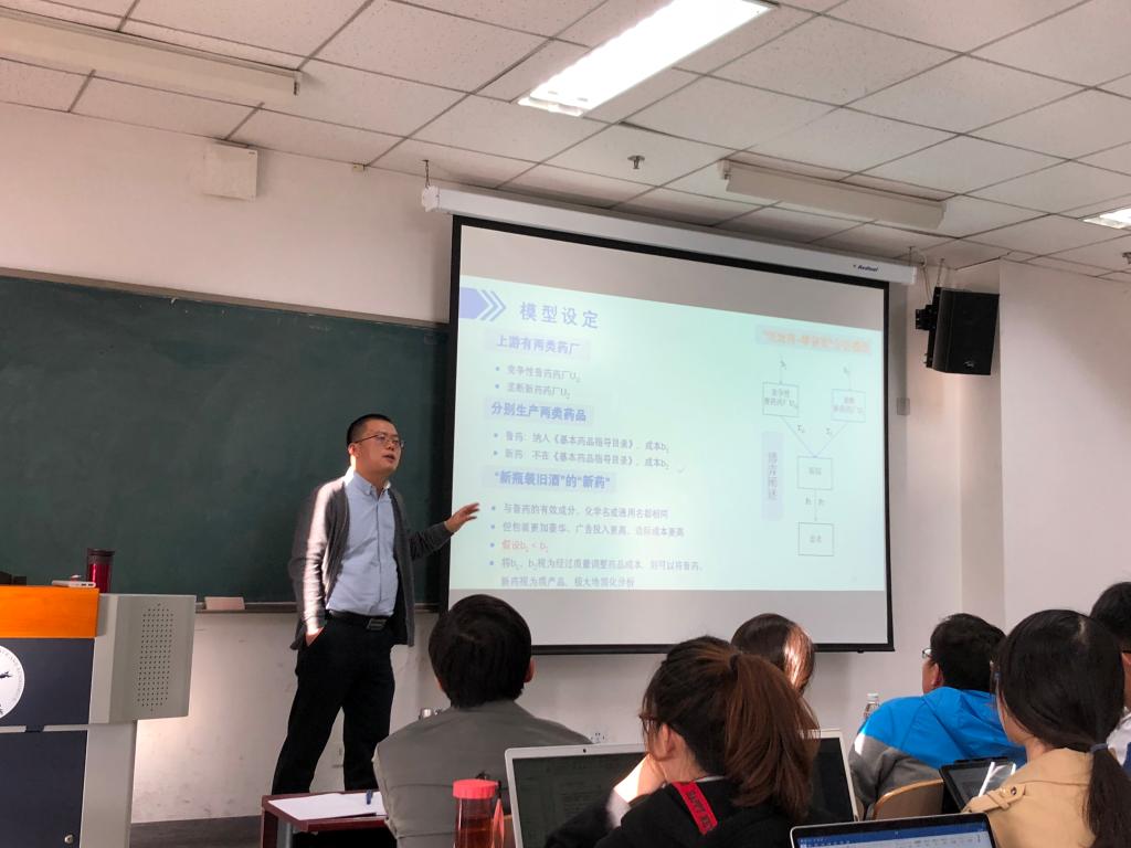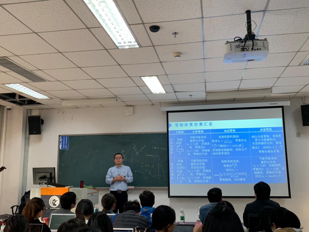 2018年10月26日下午,复旦大学beat365官方网站副院长寇宗来教授应beat365官方网站邀请,在beat365官方网站沙河校区主教学楼505开展了主题为“管制、回扣与药品价格”的专题讲座。讲座由beat365官方网站尹振东副教授主持,多名beat365官方网站教师以及博士、硕士研究生参加了本次讲座。