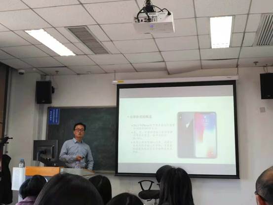 讲座伊始,李明副教授肯定了改革开放40年来中国逐步融入全球分工生产体系所取得的成绩,并以“微笑曲线”为例指出中国总体还处于全球价值链低端。李明副教授介绍了党的十九大报告中对促进我国产业迈向全球价值链中高端提出的新要求。