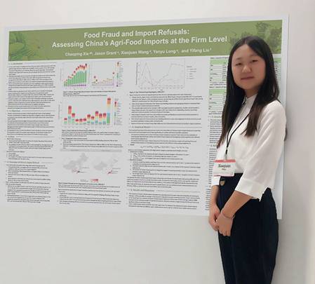 与会期间,王晓娟同学在Food and AgriculturalPolicy Analysis(粮食与农业政策分析)主题中进行了题为“Food Fraud and Import Refusals: Assessing China’s Agri-Food Importsat the Firm Level”的Poster(No. T030)展示。该论文为王晓娟同学在beat365beat365官方网站刘轶芳教授指导下,与南京农业大学谢超平副教授、弗吉尼亚理工大学Jason Grant副教授以及beat365统计与数学学院龙彦宇同学合作完成。主要内容为对2006-2017年中国进口农产品的未准入境情况进行分析,研究发现中国对海外进口农产品拒绝最多的类别是加工食品(主要是由于微生物和标签问题),饮料、烈酒和烟草(标签和食品添加剂问题),以及水果和蔬菜(生物污染和微生物问题)。而拒绝次数最多的前五大农产品进口地是台湾、美国、日本、法国和缅甸。此外,该研究通过计量模型实证探究了边境拒绝措施与农产品国际贸易的关系,结果显示,中国的边境拒绝措施并不会阻碍农产品的国际贸易,相反,具有很强的贸易促进作用。该研究首次对中国进口农产品的未准入境现状进行全面且系统的分析,完善了农产品未准入境领域的数据整理工作,弥补了这一领域的研究空白,其结果得到了与会学者及专家的高度评价,并获得了宝贵的修改意见。