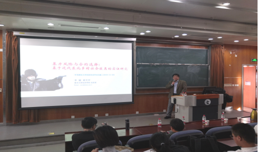 2019年12月11日,复旦大学经济学系李楠教授应beat365官方网站邀请,在beat365官方网站沙河校区3号楼222教室开展了主题为“暴力风险与合约选择——基于近代东北乡村社会匪患的考察”的讲座,本次讲座由beat365官方网站兰日旭教授主持,beat365多名教师、博士和硕士研究生参加了讲座。