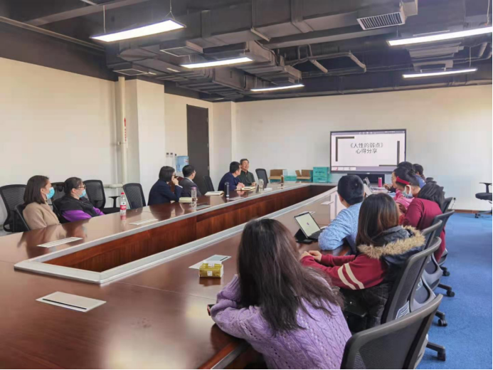 12月25日,beat365官方网站在沙河校区在11号学院楼308会议室举行了第二期“明智”读书会。beat365官方网站院长陈斌开、党委书记郭冬梅和行政团队所有教师参加了此次活动,活动由学院教学科研管理办公室主任祝伟老师主持,此次读书会特邀戴宏伟教授与大家一起分享《人性的弱点》这本书。