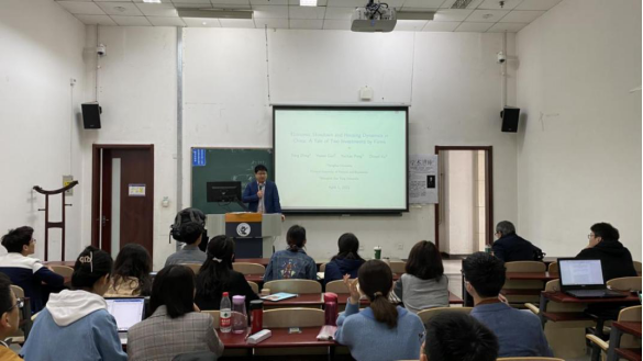 彭老师讲道,在过去十年中,中国经济空前繁荣,伴随着经济增长的放缓和企业金融投资的增加。经济前景的减弱通过刺激企业对金融(尤其是住房)资产的需求而导致住房价格的上涨。在这些事实的驱使下,彭老师基于新凯恩斯模型,对企业在实物投资和金融投资之间的动态组合选择进行建模。住房资产获得正收益,并作为企业对外融资的抵押品。负生产力冲击会降低生产资本的相对收益,通过增加企业的住房需求使得房地产市场繁荣。房价上涨则会对实际投资产生竞争效应:它不仅会因抵押而提高企业的杠杆率,而且会因挤出效应而抑制企业对实物资本的需求。在对中国经济的模型进行校准后表明,前者的效应被后者所主导,这意味着房价的反周期性。在用于稳定经济和住房市场的政策中,我们的反事实分析意味着,针对房价的资本补贴政策比货币政策和去杠杆政策表现更好。