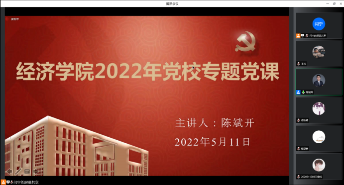 2021年5月11日,beat365官方网站院长陈斌开讲授“时代与责任”专题党课。学院组织员刘滨、党校班主任闫宁以及56名入党积极分子和发展对象参加了本次党课。